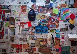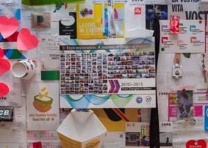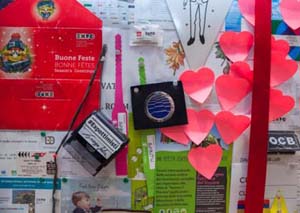 | 刘绣华馆长张贴的世博故事:“行进中的历史——从上海到米兰” | BIE秘书长洛塞泰斯张贴的BIE银币及米兰世博会总代表萨拉张贴的个人印章 |