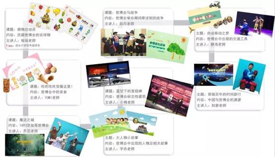 针对不同年龄阶段的学生结合世博知识点、学生兴趣点设置不同主题的课程。小讲堂为免费项目。