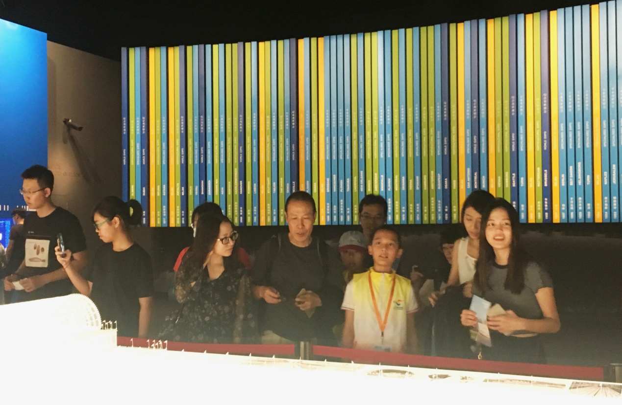 博文给人的最初印象便是有一双让人过目不忘的大眼睛,就是这双灵动的眼睛和他朗朗的讲解声在展厅内吸引着每一位游客听他的讲解。小博文刚来讲解时还是有些生涩害羞的,但不出一天的功夫就能够带着游客有模有样地参观游览了,让人不由得佩服这个孩子强大的适应能力!