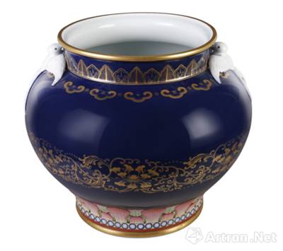 本次展览的《霁青釉描金海晏河清尊》,由中国国家博物馆授权,景德镇市官窑研究所督造,江西省陶瓷非物质文化遗产传承人熊建军大师担当制作。