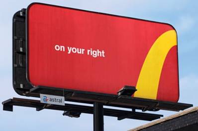 这是加拿大麦当劳携手创意机构 Cossette 最新推出一套极简户外广告,通过肢解金拱门 LOGO 来指路附近最近的麦当劳餐厅,获得广告植入。