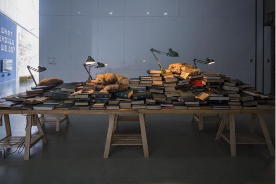 所以,虽是采用了“禹步”这一古老神秘的专有名词,展览本身却和“古老仪式”没有一点关系。一个新鲜的语词演绎之下,本届上双依旧延续对社会、政治、全球化议题的关注和反思,依旧是注重文献梳理、文本阅读和个体反思自身处境的思考,但是也抛出了一个“谦卑”的疑问:艺术的发展一定是进步的吗?也许是退步的呢?就像主策展人梅迪纳在发布会上所言:希望展览就像扔一块石头到湖里,是一个激发点,能激发出一点思想火花来。分策展人王慰慰也坦言:我们周围的世界看似民主、自由、和平,但其实很多但社会问题、意识形态、贸易战、宗教战争和人权、女权运动都让我们质疑这个世界都发展到底是进步还是退步呢?