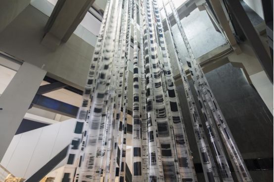 由此,让人联想到四年前第十届的“社会工厂”的策展人安塞姆·弗兰克(Anselm Franke)对双年展的构想:“艺术应有一种让我们在俗套和定型之外使用我们自身来观看和思考的力量。”而相比前两年充斥的对科技题材和技术支撑的仰赖,本届双年展“沉淀”了很多,不再在载体上推陈出新,而是更注重个体在当今社会的处境、面临的问题和价值所在;并且用最细致的数据梳理去记录、修补一个民族和时代的集体记忆。就这一点而言,位于一楼楼梯间大厅的卡德尔·阿提亚的作品《传统修复,无形之伤》值得反复阅读,并提请我们认清一个事实:正是伤痛和苦难塑造了我们的性格,而矛盾又令我们欲罢不能。