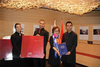 米兰时间2015年10月22日,米兰世博会波兰馆向世博会博物馆捐赠展品,波兰馆总代表Slawomir Majman、副总代表Karolina Dresler、世博会博物馆展馆馆长蒋莎出席捐赠仪式。