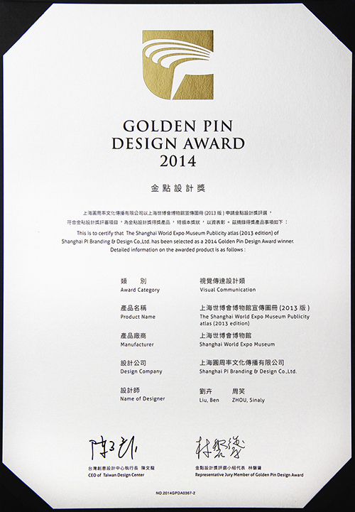 最近,《世博会博物馆宣传图册》(2013版)荣获2014年度“金点设计奖”。《世博会博物馆宣传图册》(2013版)是全面介绍世博会博物馆及其功能定位以及相关工作的宣传资料。宣传图册以“智慧聚集地,梦想孵化园”为设计主思路,以“万花筒”为设计元素,力求摆脱传统博物馆给人严肃、沉重的印象,图册利用光的折射、镂空、立体等手法,呈现内容精彩缤纷的同时,增加与读者互动和阅读的趣味性。在2013年11月法国巴黎举行的BIE国际大会上,发放到各国代表手中,起到了很好的宣传推广作用,并受到与会人员的好评。