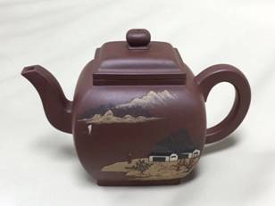 方壶 材质:老紫泥 正面:山水画江南风光 反面:唐诗