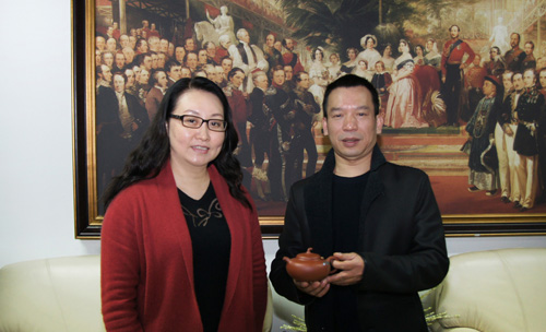 世博会博物馆馆长刘绣华接受陶艺艺术家李俊紫砂作品捐赠