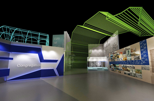 接意大利米兰世博会组委会通知,世博会博物馆展馆位置调整至生态地中海集群(Bio-Mediterraneum Cluster),比邻园区内最大的游客公共开放空间Lake Arena。同时,与意大利馆、万科馆、可口可乐馆、中国企业联合馆咫尺为邻。