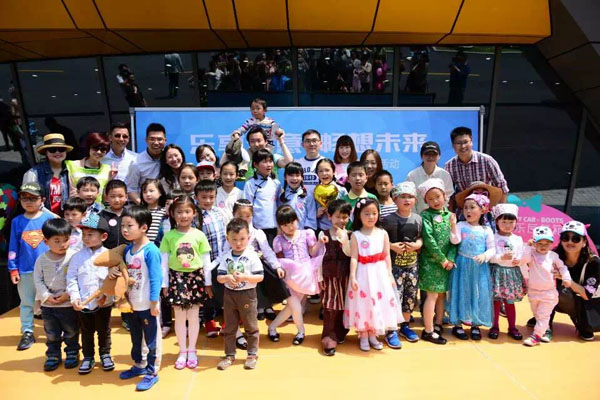 年轻的爸爸妈妈带着孩子参加“乐享创意畅想未来”团日活动