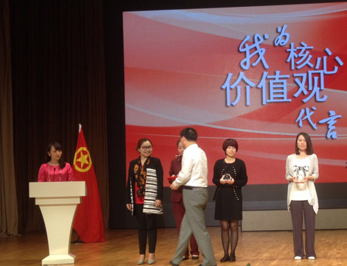 5月5日下午,由上海市文化广播影视管理局团委组织举办的“我为核心价值观代言”——文广影视局纪念“五四”运动96周年主题团日表彰分享活动,在中华艺术宫艺术剧场举行。
