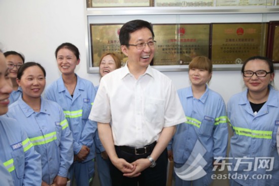 “在人群高度聚集地区,保持环境持续整洁很不容易,大家辛苦了,你们是上海城市的美容师。”在天钥桥路,韩正看望了徐家汇女子清道班的员工,与大家亲切交谈,询问后勤保障措施是否到位,并察看了清道班的休息场所。班长李静告诉市领导,徐家汇女子清道班95名环卫工人中,“80后”已是中坚力量,好的传统靠传帮带,一直坚持着。高温季节,单位里早已准备了防暑降温用品,并通过合理排班让大家都能休息好。韩正十分关心环卫工人的收入这些年是否提高了,大家告诉市领导,收入在不断提高,各方面都很关心。市领导叮嘱相关负责同志,一定要安排好大家的作息时间,爱护好职工。
