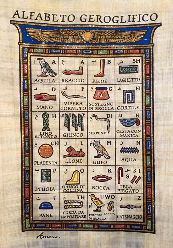 意大利米兰当地时间8月6日,世博馆迎来一位埃及馆友人Hagy,他向世博馆工作人员介绍了距今5000年的古埃及象形文字——Hiérpglyphe,这是希腊语“神圣”与“铭刻”组成的复合词,即“神的文字”。古埃及人认为他们的文字是月神、计算与学问之神图特造的,和中国人“仓颉造字”的传说很相似。