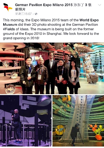 图3:德国馆官方Facebook报道世博馆3D 影像记录