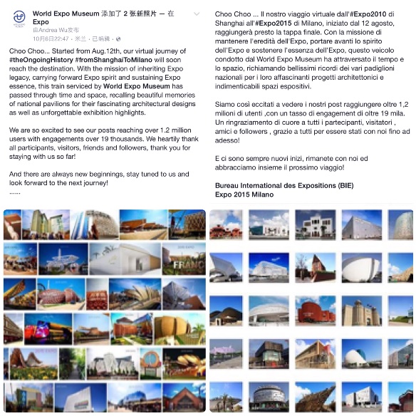 图2:世博馆官方Facebook发布“行进中的历史——从上海到米兰”系列
