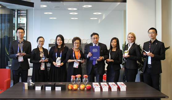 世博会博物馆展馆馆长蒋莎(左四)向波兰馆总代表Slawomir Majman(右四)颁发捐赠证书