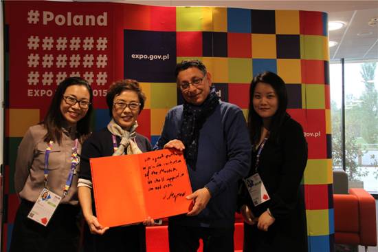 米兰时间2015年10月22日,米兰世博会波兰馆向世博会博物馆捐赠展品,波兰馆总代表Slawomir Majman、副总代表Karolina Dresler、世博会博物馆展馆馆长蒋莎出席捐赠仪式。波兰馆捐赠的是8件套波兰定制动物瓷器组,代表波兰瓷器制作工艺水平。