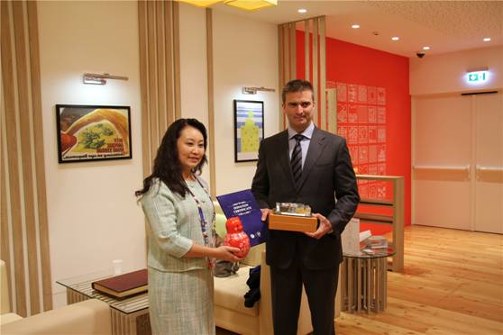 米兰时间2015年10月29日,米兰世博会俄罗斯馆向世博会博物馆捐赠展品,俄罗斯馆馆长Sergey Bondarenko,米兰世博会博物馆展馆总代表刘绣华出席捐赠仪式。俄罗斯馆捐赠品为其吉祥物Mishka。