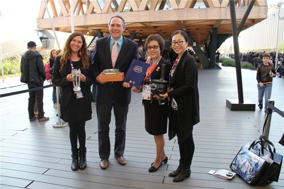 米兰时间2015年10月31日,米兰世博会智利馆向世博会博物馆捐赠传统手工黑陶器及银制胸口垂饰的展品。智利馆总代表Lorenzo Constans,米兰世博会博物馆展馆馆长蒋莎出席捐赠仪式。