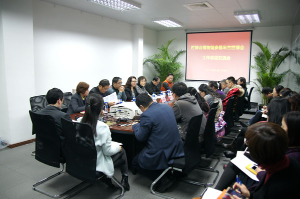 1月27日下午,世博会博物馆召开参展米兰世博会工作总结交流会。会议由世博馆党总支书记蒋莎主持,上海市委宣传部干部处、文广局相关处室负责人及出访团组全体成员与会。