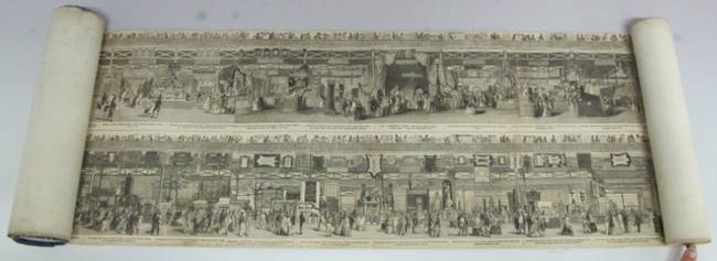 此画为英国老牌画报《伦敦新闻画报》为纪念伦敦世博会而创作的一幅作品。该画根据贝尔德(Richard Beard)拍摄的银版照片,采用19世纪西方盛行的木口木刻技术印刷。采用这种技术制作的画具有照片的效果,不过由于使用的木范较多,画面拼接痕迹比较明显。尽管如此,这一作品比较完整的展现了第一届世博会的场景,备受文物、收藏界的关注。