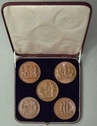 该套奖牌共有五枚,每一奖牌正面中间都是奥匈帝国的皇帝弗兰茨?约瑟夫的头像,周围拉丁文“FRANZ JOSEPH I KAISAR VON OESTERREICH. KOENIG VON BOEHMEN ETC. APOST. KOENIG VON UNGARN”中文意为“弗朗茨?约瑟夫一世,奥匈帝国皇帝”。头像下方是雕刻师约瑟夫?陶顿海因的姓名缩写“J TAUTENHAYN”。