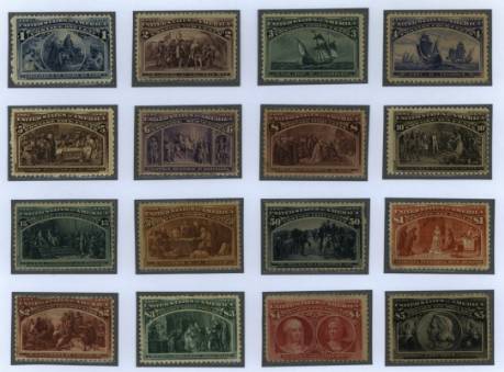 1893年1月2日,美国邮政部特地发行了一套16枚的《哥伦布发现美洲400周年》纪念邮票,这是世界上第一套世博会纪念邮票,图案全部采用收藏于西班牙和意大利博物馆中的世界名画。邮票画面分别是发现陆地、登上陆地、哥伦布旗舰、求助伊莎贝拉女王、巴塞罗那欢迎哥伦布、哥伦布宣布发现、再次登陆、第三次航行、伊莎贝拉与哥伦布以及哥伦布像等。该套邮票存世不多,是世博会邮票中最为珍贵的。