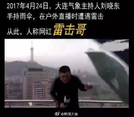 中国也有“以身试法”的“雷击哥”,去年大连气象主播刘晓东在进行户外连线时被雷电击中,今年他又被风给“收拾”,看来上天特别偏爱这位小哥哥!