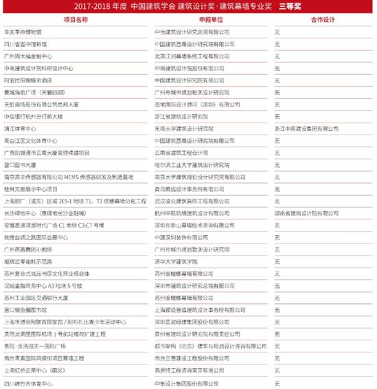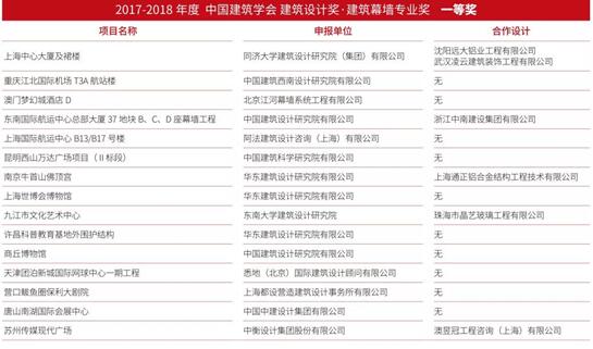 2017~2018年度中国建筑学会建筑设计奖·建筑幕墙专业奖获奖项目汇总