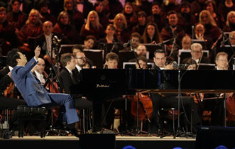4月30日,意大利米兰大教堂前的多莫广场举行了2015米兰世博会开幕晚会。