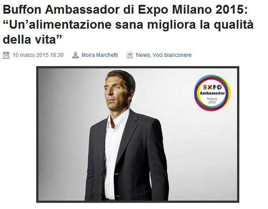 根据意大利安莎社的最新消息,尤文图斯队长布冯当选为米兰世博会的形象大使。