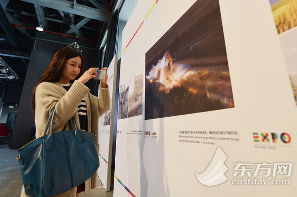 图为一位参观者正用手机拍摄此次2015米兰世博会的中国馆效果图。