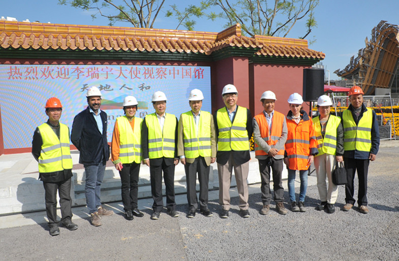 4月23日,中国驻意大利大使李瑞宇视察2015米兰世博园区中国国家馆、企业联合馆和万科馆。