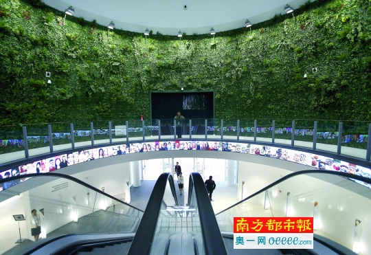 进入中国馆之前,馆长张亮特别向南都记者介绍,“门口的大红照壁很有北京风味,园林中种植了金黄色的孔雀草,说是草,其实是一种如雏菊的花,四周飘荡着花香。这实际上也为2019年将在北京举办的世界园博会做了一次宣传。”透过花海园林,中国馆以歇山式的屋顶呈现出“麦浪翻涌”的形象;中国馆的内部,有以现代科技手段和实物展示相结合的甲骨文、稻作文化、花山岩画、哈尼梯田、桑蚕文化、茶文化、北京烤鸭、杂交水稻、农业物联网等,到二楼还可以观看电影《团圆》和习主席关于世博会致辞的视频。