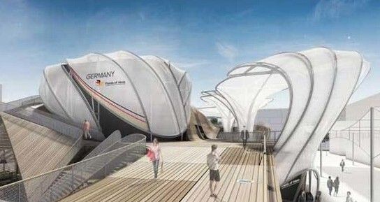 德国馆:本次世博会占地最大的参展国国家馆,由几家创意工作室联合设计,建筑设计由大名鼎鼎的Schmidhuber事务所亲自操刀,德国馆又名“灵感的田野”(field of ideas) ,德国馆根据2015世博会的整体主题要求,将其展馆主题定为思想领域,反应了德国人严谨的精神,德国人作出了其承诺,整体设计构筑了一个美好的德国乡村景观,淋漓尽致地说明以崇敬的态度面对大自然,对人类未来营养来源的重要性。在德国馆游客可经由两种不同路线探索“灵感的田野”。第一条路线,游客可漫步在可以自由进出的景观水平,让游客享受有如在公园闲逛的感觉。第二条路线引导游客通过馆内的专题展览,呈现土壤、水、气候与生物多样性等各异的滋养来源,一路抵达城市食物生产与消费,充分展现德国人在解决未来人类营养挑战时令人惊叹的方法。