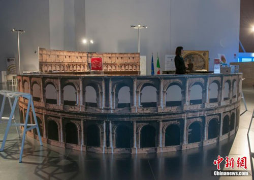 图为威尼斯水馆内一处装扮成罗马斗兽场的接待处。 中新网记者 李卿 摄