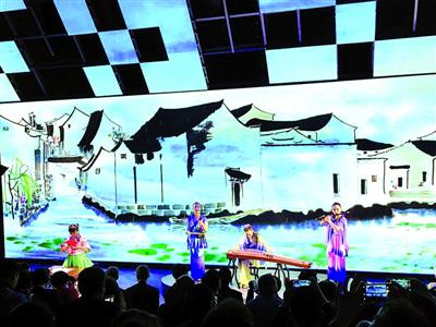 三位来自上海的少女民乐手,与中国传统书法与剪纸表演一起,演绎起如诗如画的《江南风韵》。去年亚信上海峰会期间,中国非物质文化遗产展示和文艺演出在上海豫园进行,其中一个节目正是《江南风韵》。