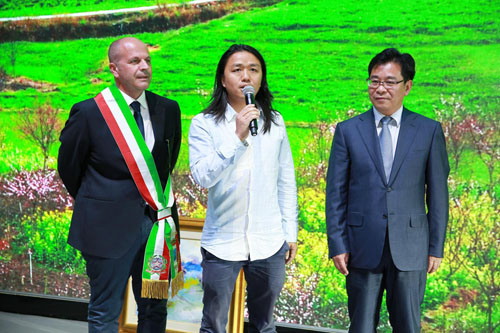 在这次世博会的推介活动中,刘义现场将其最新画作《紫鹊界境象NO.1》代表娄底市新化县赠送给了多明戈市长,由波利尼亚诺阿马雷市市政府收藏。中西文明的交汇与融合需要使者,除了一万公里之遥相隔的大海和高山,还有语言、习俗、礼仪与文明之间的阻隔。丝路复兴需要像千万个刘义先生这样的热心人士,充当紫鹊界的国际交流使者,充当中西文化的交流使者,充当丝路复兴的使者,我们期待刘义先生可以成为标杆。