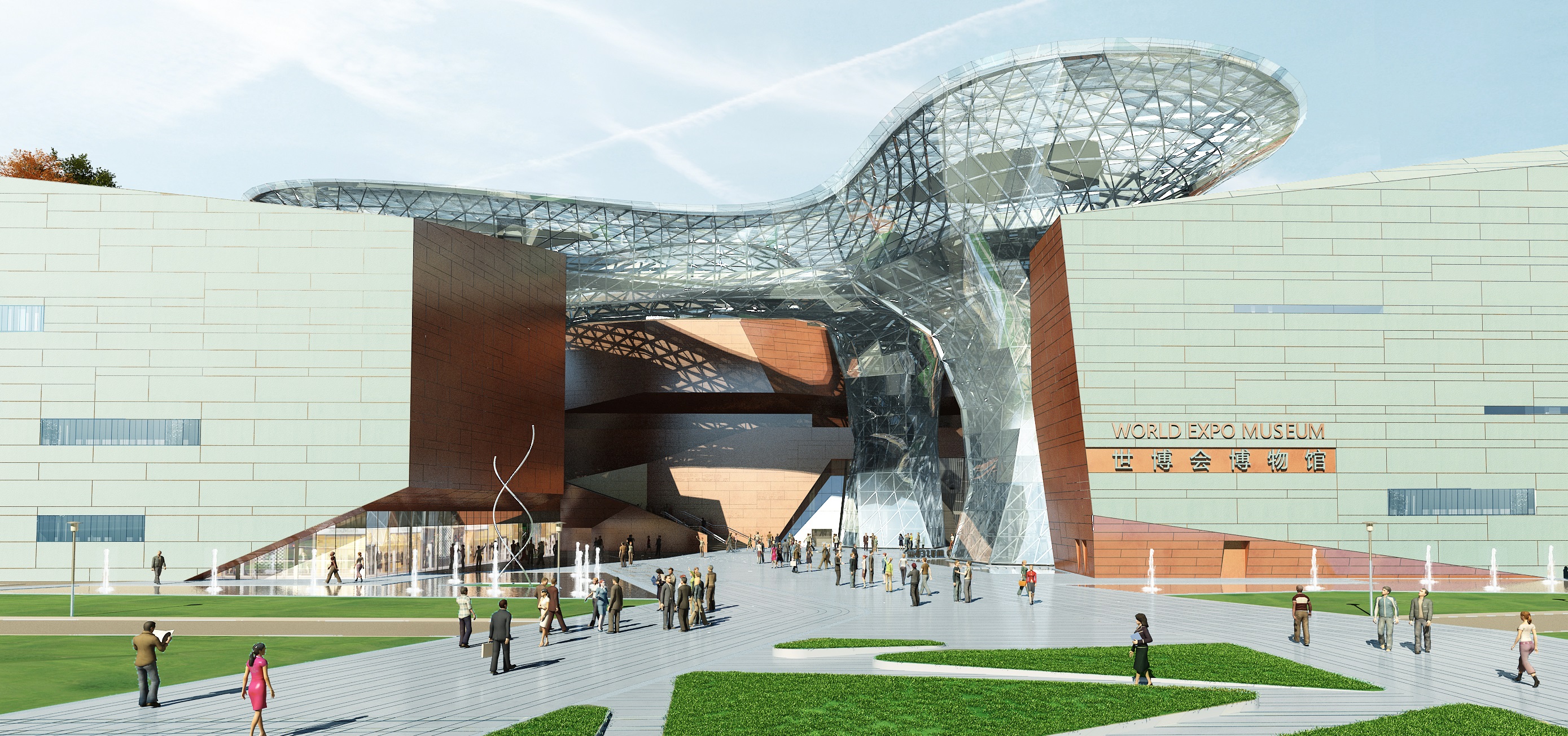 ¡¡¡¡In line with characteristics of the surrounding environment and sound inner layout, the architectural form of the World Expo Museum uses the image superimposition of “History Valley”, which symbolizes the history, meditation and eternity, and “Celebration Cloud”, which represents the future, openness and moment, to interpret its theme.