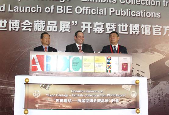 Mr. Hong Hao, Mr. Dimitri Kerkentzes and Mr. Wang Jinzhen launching the “Expo Heritage: Exhibits Collections from World Expos”& BIE Official Publications