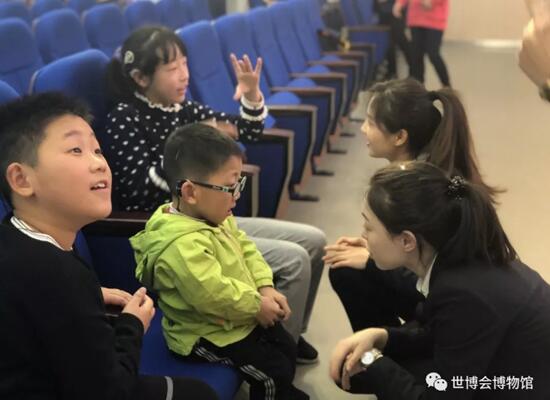 The World Expo Mini Lecture followed a welcoming speech by teacher Guan from the office of student affairs. During the class, students tried their best to express themselves by making sign languages. Their facial expressions and enthusiasm greatly moved us. The lesson, as a moving museum, enlarged the student’s scope of knowledge and made them feel the happiness and charm of learning new knowledge. It is a special and meaningful gift for them.