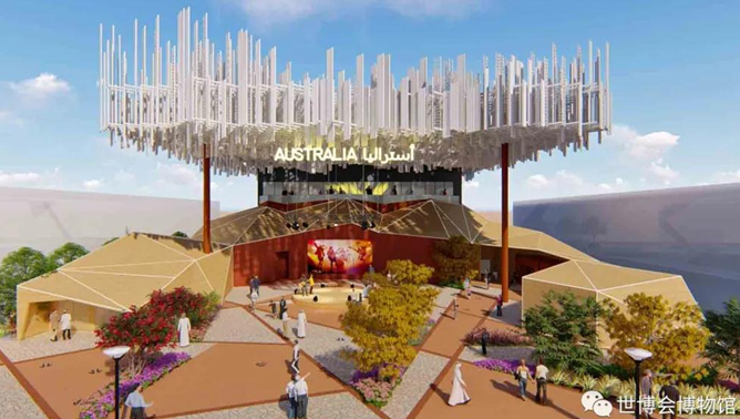 2020年迪拜世博会澳大利亚馆白色的天蓬,像蓝天下蓬松的白云。