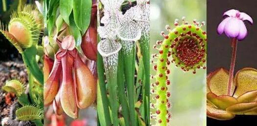 另一些植物则有形如水瓶的叶片,瓶里盛满消化液可以引诱消化落网昆虫。