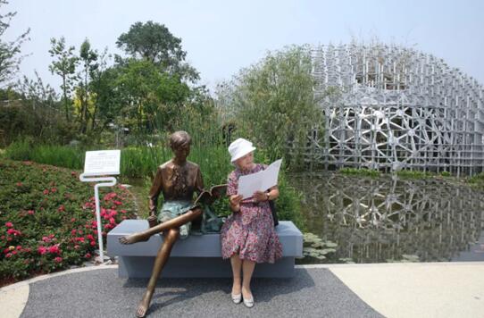 高耸的永宁阁,绿意葱茏的植物馆,锦绣如意的中国馆,大气典雅的北京园……足迹所到之处,“世博奶奶”不时伸出大拇指,为中国和世界的特色建筑和园艺、处处体现的生态文明理念叫好。