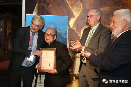 法国政府总代表阿兰·伯杰向邱祥锐颁发捐赠证书,洛塞泰斯、欧斯特罗姆等见证