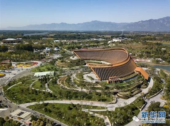 这是北京世园会园区一角(10月7日无人机拍摄)