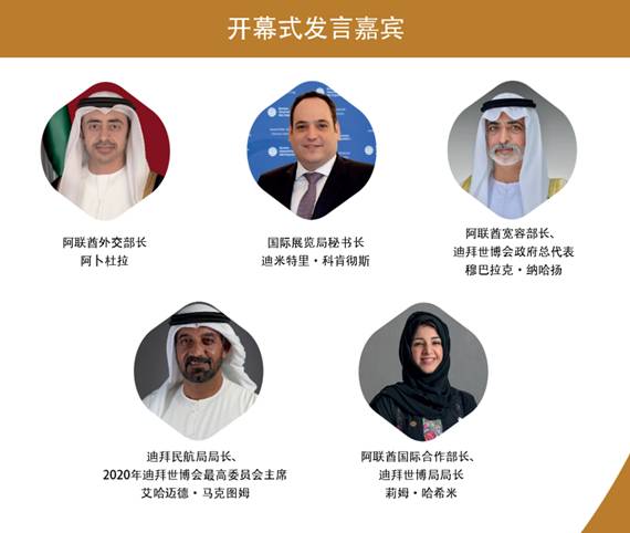 国展局秘书长迪米特里·科肯彻斯在开幕式发言中表示,国展局及其成员国、阿联酋政府及所有参展方将共同制定操作指南,以保障一个安全的、没有新冠的世博园区。