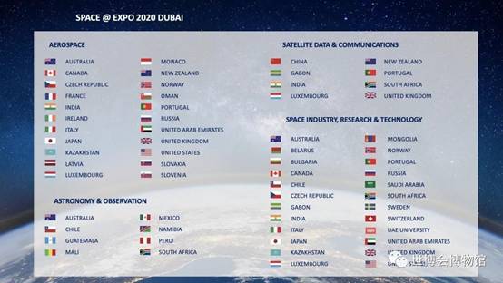 迪拜世博会将呈现太空相关展览内容的参展国家