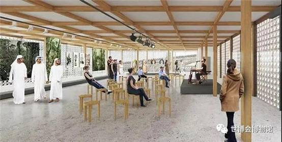 去过巴西北部的人可能看到过,有一种架空于沼泽土壤或水面上的建筑,叫干栏屋(stilts),巴西这次将它“搬到”迪拜沙漠,让参观者可以漫步其中或周游历览,同时领略巴西河畔的旖旎风光、悦耳妙音及馥郁芳香,深入了解该国丰富的生物多样性及其在可持续生产方面的潜力。这种将“水”与“沙漠”相连的构思令人耳目一新。