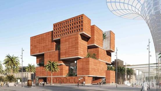 2020 年迪拜世博会摩洛哥馆的主题是“灵感王国”,展馆取摩洛哥村庄的祖传土制建筑方法之灵感,传统与现代技术交织,这一积木式建筑看上去既时髦又复古,既回归本初又富有未来感。展馆及其各个展区通过连续缓行坡道,再现摩洛哥老城的美丽街道和被称为“Wast Eddar”的摩洛哥露台,为游客提供身临其境的非凡体验。从垂直土楼上俯瞰,可一览世博会盛景。摩洛哥馆将展示蓬勃向上、日新月异且极富创新精神的摩洛哥对地球可持续未来的承诺。