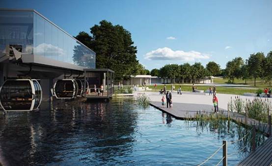 据《建筑与生活》(Bouw en Wonen)报道,2022 年阿姆斯特丹——阿尔梅勒世园会主办方表示,跨越 2022年阿姆斯特丹-阿尔梅勒世园会园区的 850 米长的缆车正在施工。这个 35 米高的空中运输系统将于 6 月完工,届时世园会预开放活动的参观者将有机会体验。